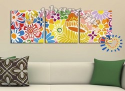 Состав набора: три загрунтованных хлопковых холста с контурным рисунком закрепленые на деревянном подрамнике; водно-дисперсионные (акриловые) краски, не требующие смешивания, в герметичных тубах; пустые пластиковые баночки для выдавливания краски; наклейки с номерами для пустых баночек; комплект кистей; чёрно-белая инструкция (повторяет контурный рисунок на холсте); цветная инструкция (репродукция картины); инструкция с рекомендациями по использованию набора; металлические части крепления для подвешивания картины.