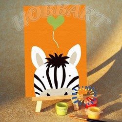 Состав набора: загрунтованный хлопковый холст с контурным рисунком (наклеен на картонную основу) размером 10х15см; водно-дисперсионные (акриловые) краски, не требующие смешивания, в герметичных тубах; одна нейлоновая кисть; деревянный мини-мольберт для готовой работы.