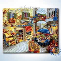 Состав набора: загрунтованный хлопковый холст с контурным рисунком закреплен на деревянном подрамнике размером 40х50см; водно-дисперсионные (акриловые) краски, не требующие смешивания, в герметичных тубах; пустые пластиковые баночки для выдавливания краски; наклейки с номерами для пустых баночек; комплект кистей; чёрно-белая инструкция (повторяет контурный рисунок на холсте); цветная инструкция (репродукция картины); инструкция с рекомендациями по использованию набора; металлические части крепления для подвешивания картины.