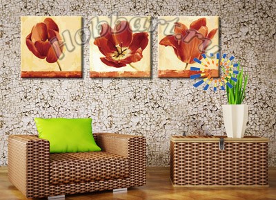 Состав набора: три загрунтованных хлопковых холста с контурным рисунком закрепленые на деревянном подрамнике; водно-дисперсионные (акриловые) краски, не требующие смешивания, в герметичных тубах; пустые пластиковые баночки для выдавливания краски; наклейки с номерами для пустых баночек; комплект кистей; чёрно-белая инструкция (повторяет контурный рисунок на холсте); цветная инструкция (репродукция картины); инструкция с рекомендациями по использованию набора; металлические части крепления для подвешивания картины.