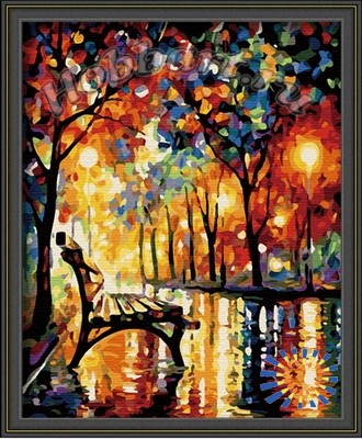 Состав набора: загрунтованный хлопковый холст с контурным рисунком закреплен на деревянном подрамнике размером 40х50см; водно-дисперсионные (акриловые) краски, не требующие смешивания, в герметичных тубах; пустые пластиковые баночки для выдавливания краски; наклейки с номерами для пустых баночек; комплект кистей; чёрно-белая инструкция (повторяет контурный рисунок на холсте); цветная инструкция (репродукция картины); инструкция с рекомендациями по использованию набора; металлические части крепления для подвешивания картины.