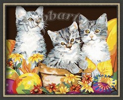 Состав набора: загрунтованный хлопковый холст с контурным рисунком закреплен на деревянном подрамнике размером 40х50см; водно-дисперсионные (акриловые) краски, не требующие смешивания, в герметичных тубах; пустые пластиковые баночки для выдавливания краски; наклейки с номерами для пустых баночек; комплект кистей; чёрно-белая инструкция (повторяет контурный рисунок на холсте); цветная инструкция (репродукция картины); инструкция с рекомендациями по использованию набора; металлические части крепления для подвешивания картины.