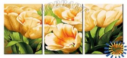 три загрунтованных хлопковых холста с контурным рисунком закрепленые на деревянном подрамнике; водно-дисперсионные (акриловые) краски, не требующие смешивания, в герметичных тубах; пустые пластиковые баночки для выдавливания краски; наклейки с номерами для пустых баночек; комплект кистей; чёрно-белая инструкция (повторяет контурный рисунок на холсте); цветная инструкция (репродукция картины); инструкция с рекомендациями по использованию набора; металлические части крепления для подвешивания картины.