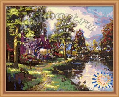 Состав набора: загрунтованный хлопковый холст с контурным рисунком закреплен на деревянном подрамнике размером 40х50см; водно-дисперсионные (акриловые) краски, не требующие смешивания, в герметичных тубах; пустые пластиковые баночки для выдавливания краски; наклейки с номерами для пустых баночек; комплект кистей; чёрно-белая инструкция (повторяет контурный рисунок на холсте); цветная инструкция (репродукция картины); инструкция с рекомендациями по использованию набора; металлические части крепления для подвешивания картины.