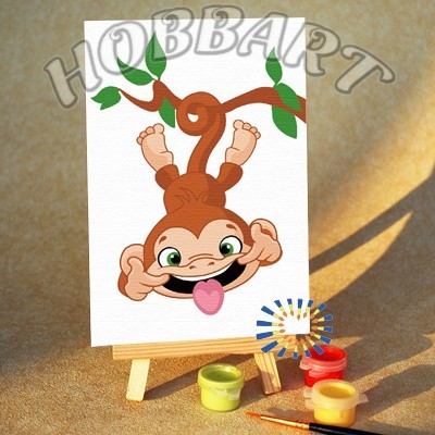 Состав набора: загрунтованный хлопковый холст с контурным рисунком (наклеен на картонную основу) размером 10х15см; водно-дисперсионные (акриловые) краски, не требующие смешивания, в герметичных тубах; пустые пластиковые баночки для выдавливания краски; наклейки с номерами для пустых баночек; одна нейлоновая кисть; деревянный мини-мольберт для готовой работы.